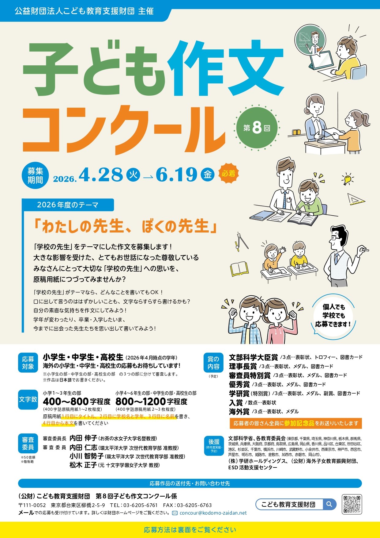 (公財)こども教育支援財団「作文コンクール係」(平日10時~17時)