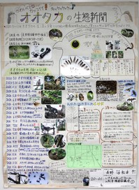 | 北アルプスが見える自然豊かな松本盆地を拠点に、幼児から中学生まで幅広い年代が集まって、田んぼの世話や収穫物の販売をはじめとする農業体験や生き物観察に、みんなで楽しく取り組んでいます。 今回、日頃の活動を通して生き物観察の基礎的な知識が身についたメンバーが、オオタカの巣作りからヒナが誕生して巣立つまでの子育ての記録、観察について壁新聞にまとめました。 子育ての邪魔をしないよう、近づきすぎない、見過ぎない、親鳥に気づかれたら帰ることを徹底しながら、エサやりの様子や狩りの特訓などを観察。無事にヒナが巣立つまで見守ることができました。 オオタカの観察を通して、生き物にとって暮らしやすい環境について考えるきっかけにもなり、メンバーたちはこれからも多様な生き物が未来に残るよう、継続的に自然環境を守る必要があることを実感しています。 |