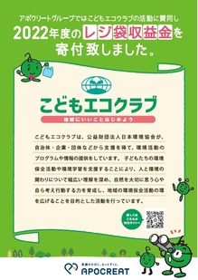 「アイランド薬局」、「薬局アポック」として薬局事業を中心に展開しているアポクリート株式会社様より、昨年度に引き続き、レジ袋の有料化に伴い店舗で販売したレジ袋の収益金をご寄附いただきました(各店舗でもご報告・ご紹介をいただいております)。