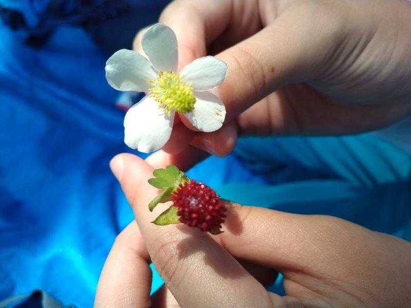 アラゲキクラゲを触ってフワフワとした感触に驚いたり、ヤマウドやタラ、クサギなど、様々な植物の匂いを嗅いで何の匂いに感じるかを話しあってみたりと楽しみながら歩いて植樹を行う場所に到着!