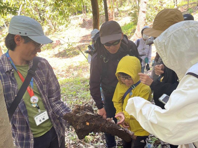 まずは公益財団法人トトロのふるさと基金の方より、この森について教えてもらいます。団体では狭山丘陵の中でも64ヵ所の森を保全していて、100ヵ所を目指しているのだそう!森の中にはマダニやヤマカガシ、スズメバチやウルシなどのキケンな生き物・植物もいることや、その対策などを学びました。