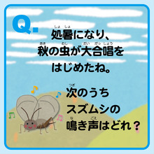 処暑のクイズ:つづきはこちら→ Q:処暑クイズ!次のうちスズムシの鳴き声はどれ?
