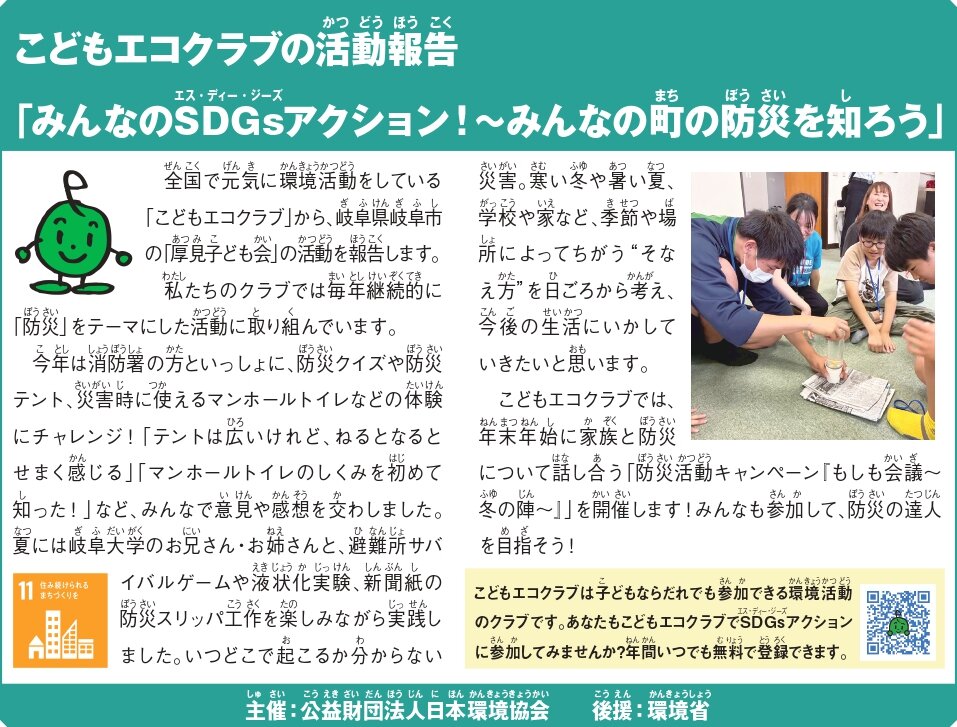 12月号では、岐阜県岐阜市「厚見こども会」さんの活動レポート「みんなの町の防災を知ろう」をご紹介しました。