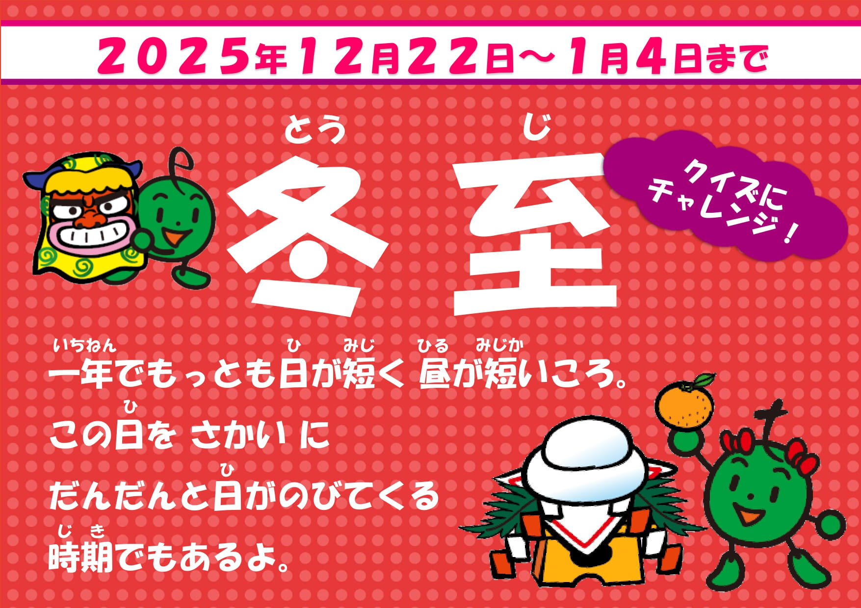 一年でもっとも日が短く、昼が短いころ。この日をさかいに、だんだんと日がのびてくる時期でもあるよ。