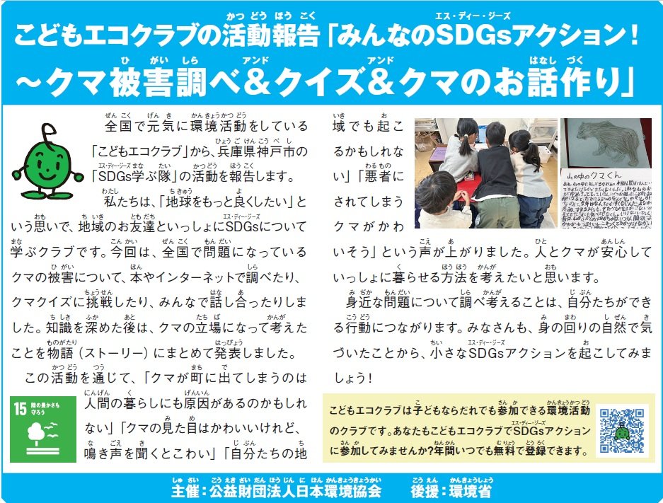 2026年1月号では、兵庫県神戸市「SDGs学ぶ隊」さんの活動レポート「熊被害調べ&熊クイズ&熊のお話作り」をご紹介しました。