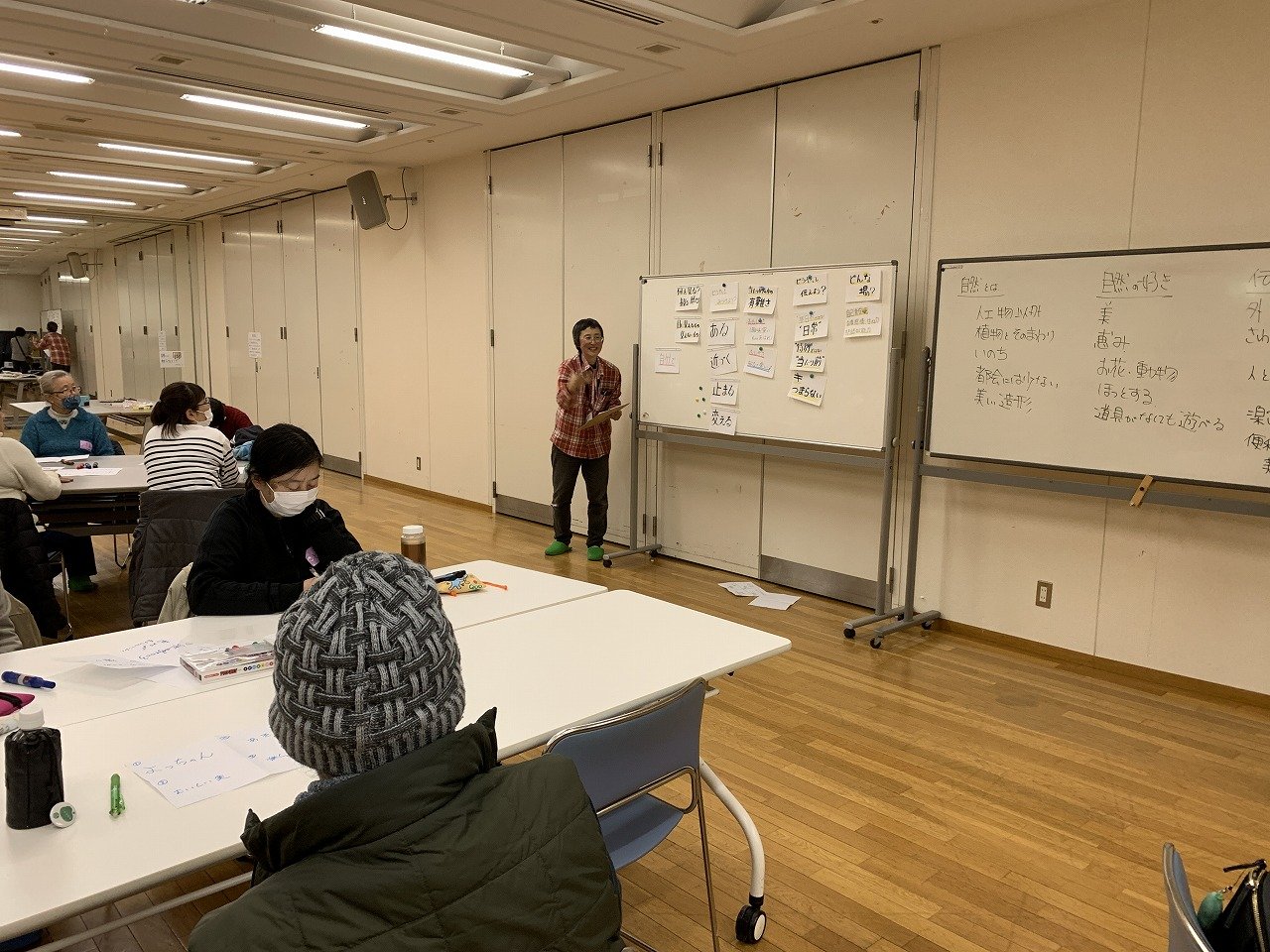 最後に振り返りを行うと、みなさん本研修会を通して様々なことに気づいてくださったようで、「土の匂いを気にしたことがなかったので発見があった」「自然も生きていることが実感できた」「自然とのつながりを感じられるアクティビティが学べた」など色々な感想・意見が出ていました。