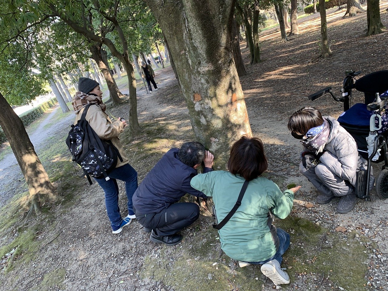 基本を学んだらフィールドへ!身近な公園を舞台に、まずは土・苔・触感などをテーマとしたアクティビティを教えていただきました。どれも気軽にできる上、土や苔など自然の魅力や面白さを再発見できて夢中になれるものばかり♪