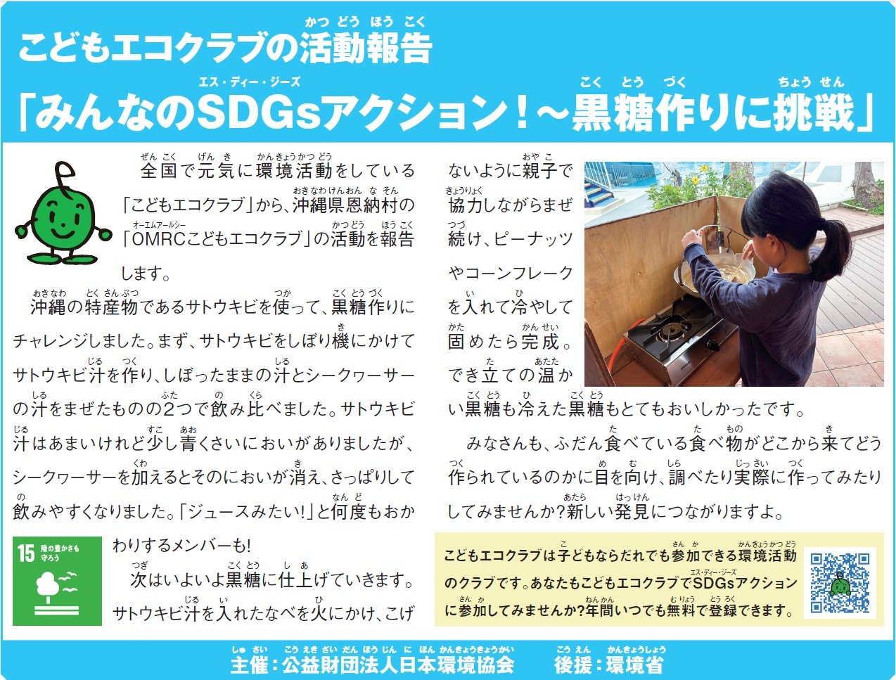 2026年3月号では、沖縄県恩納村「OMRCこどもエコクラブ」さんの活動レポート「黒糖づくり」をご紹介しました。