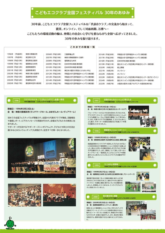 こどもエコクラブ30周年記念展示パネル「全国フェスティバル30年のあゆみ」